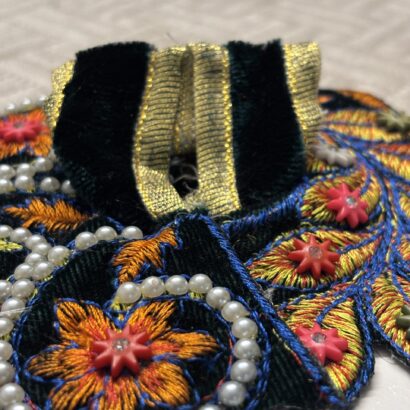 Heavy kashmiri embroidery and pearl work dark green velvet dress ( size1 )